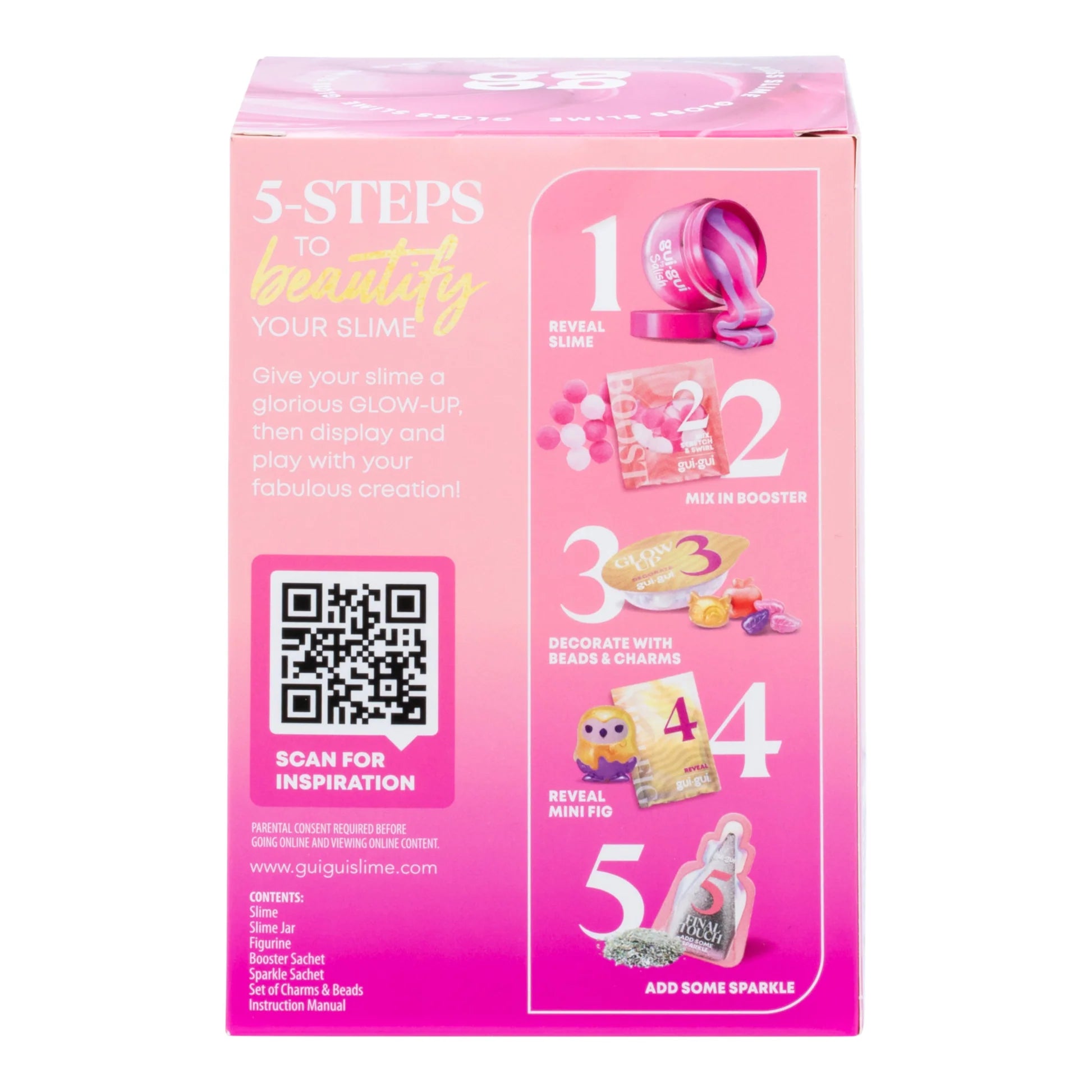 Introducing Gui Gui By Salish – a truly unique slime experience, co-created with HUGE YouTube influencer Salish Matter. Join Salish and level up your slime game as you create the most beautiful slime based around all the things Salish loves. Each themed slime is unique to this collection, inspired by Salish herself. Follow the 5 easy steps to slay your scented slime styling: Reveal your scented slime. Mix in your booster. Glow it up with mini and large charms to your Gui Gui creation. Find your unique surprise figurine. Add some sparkle for the finishing touch.