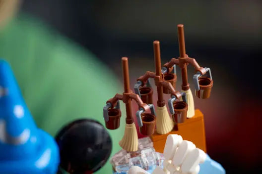 - Iconic Disney characters – A buildable Mickey Mouse figure, Belle, Geppetto, Bruno and Lilo minifigures, plus Simba, Sebastian, Flounder and 3 Broom figures
